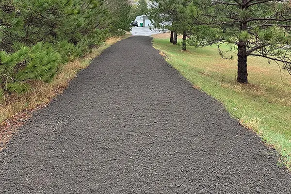 In Minnesota’s freeze-thaw climate, properly compacted asphalt millings perform well when installed over a stable base and graded correctly. They resist rutting when installed at the correct depth and compacted with proper equipment. For long rural driveways or private roads, millings are often preferred over loose gravel because they bind together under pressure and traffic.
